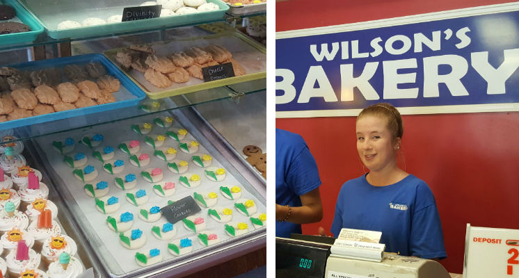 As we drove out of the neighborhood, I told Sweetums about the little white cookies I loved as a child that were only available at the bakery in Miller Hills Plaza, which was once also home to the Rama Theater but was now a worn and pitiful-looking shopping center. The Rama is gone but I looked over as we passed and was shocked to see a sign that said Wilson’s Bakery, and another that said, “Open.”