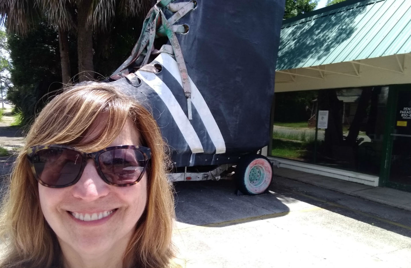 The skate was originally created to promote a local roller rink. When it closed, the skate was moved earlier this year to the Pensacola Parade People office. According to a post on RoadsideAmerica.com, the owner of the parade organization, which helps sponsor krewes during the city’s Mardi Gras, was once on a roller derby team called Pensacola Roller Gurlz.