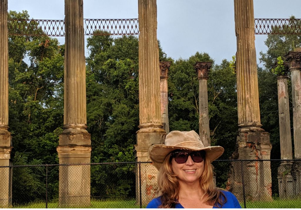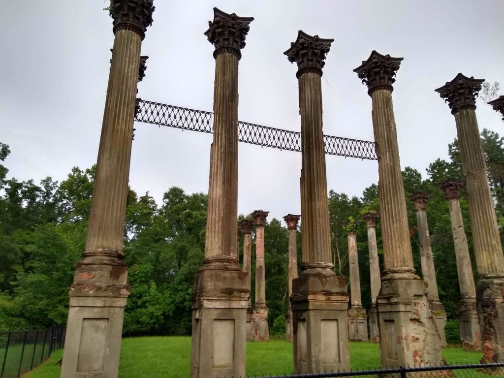 It was obvious the elegant columns once supported a beautiful mansion but all that is left is the columns and some cast-iron balustrades after a fire in 1890. Three cast-iron staircases also survived; one is now located at nearby Alcorn State University.
