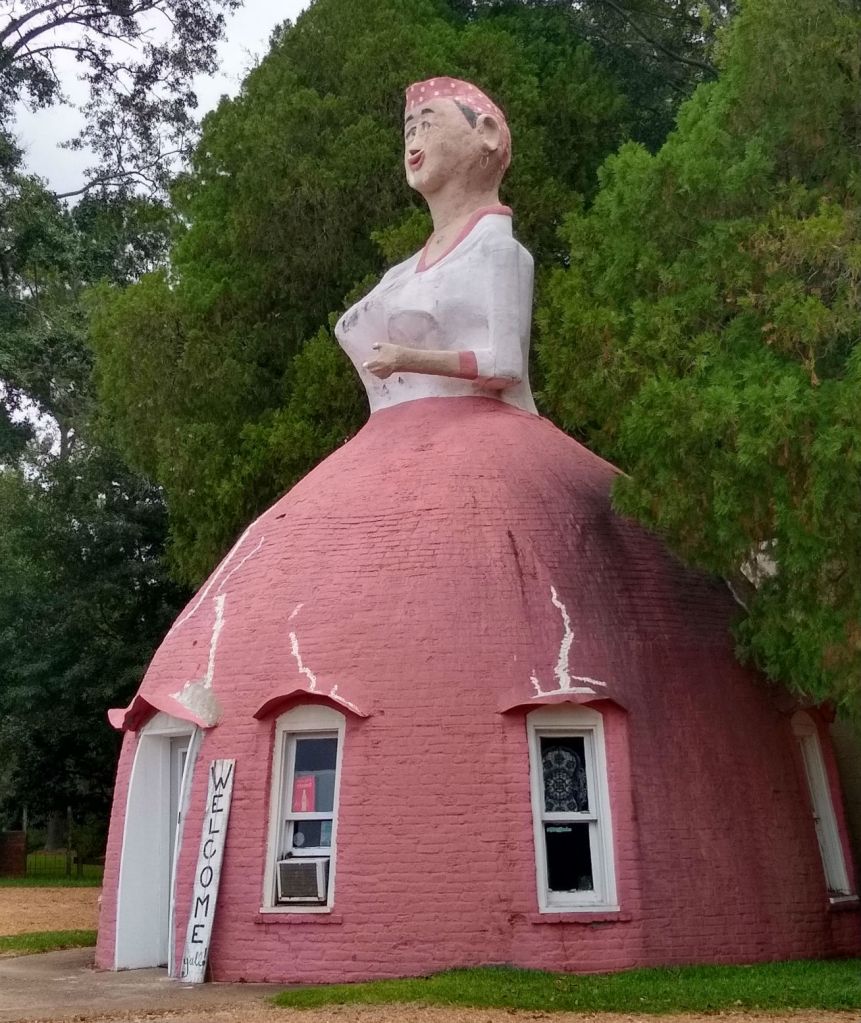 Mammy’s Cupboard is a roadside icon, seen from Highway 61 in Natchez, whose cultural appropriateness was called into question when she was painted black and the name “Mammy” was used in the name.