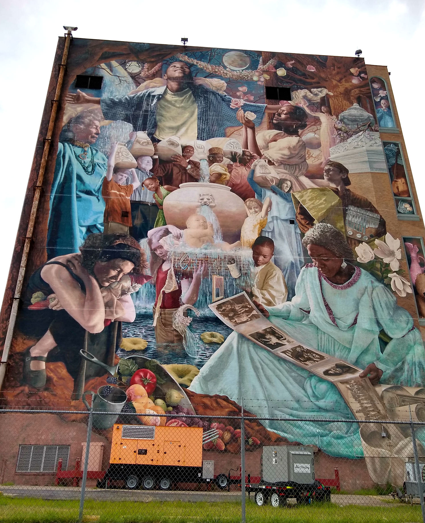 According to explanatory signs at the site, the 19 people depicted are real people. In addition, the mural objects with personal meaning. “Each one is an heirloom that has meaning to a family or person in the Shreveport/Bossier community,” the article said. Click here to read the details. southernlagniappe.blogspot.com/.
