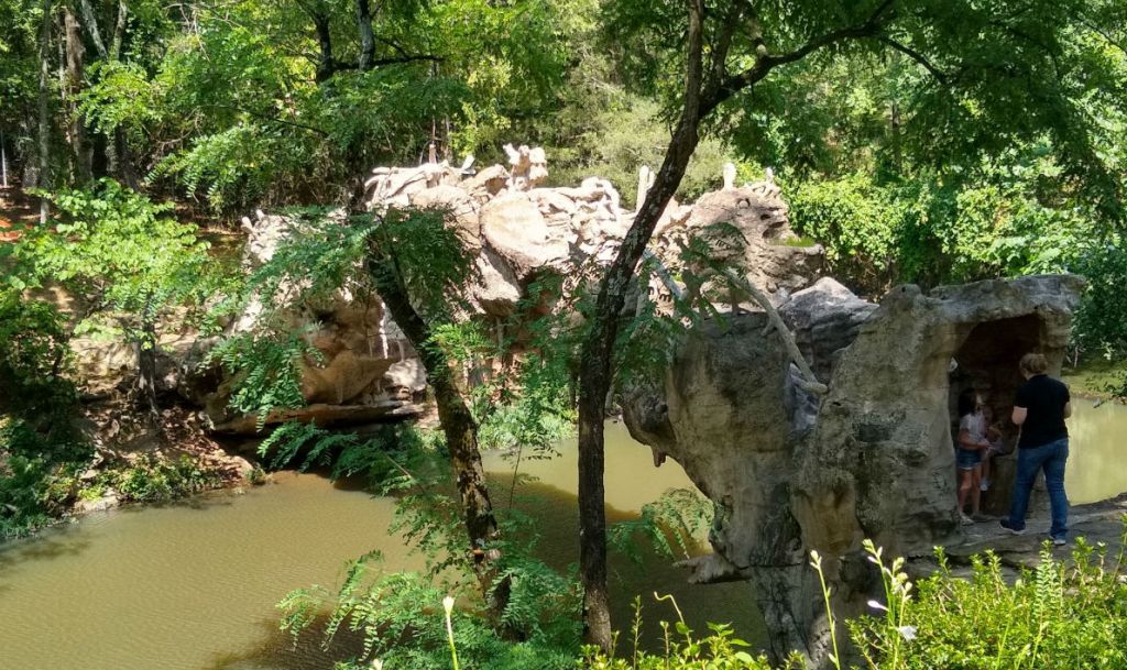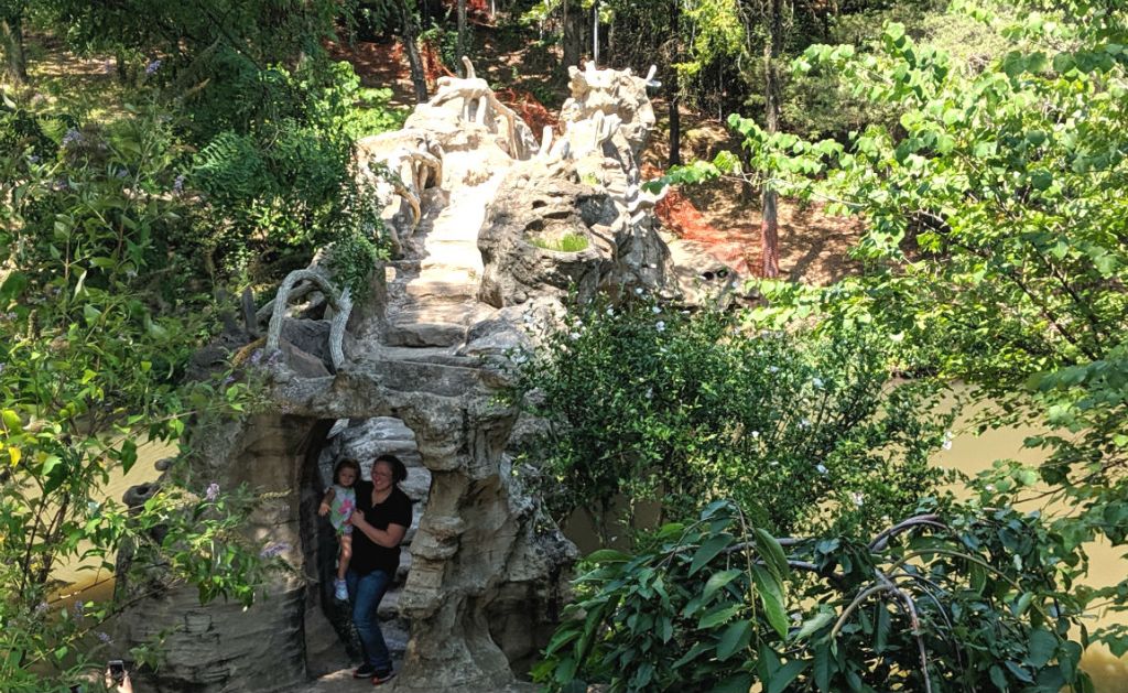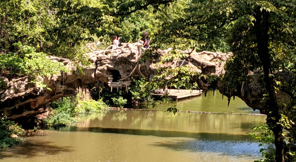 Interestingly, the mill was sculpted from concrete by artist Dionicio Rodriquez to simulate wood and iron. Visitors can go inside the mill, even up the stairs, and look around. It’s an amazing structure. But the sculptor didn’t stop there. He also sculpted tree-branch-entwined bridges, tree stumps, toadstools and other objects around the park.