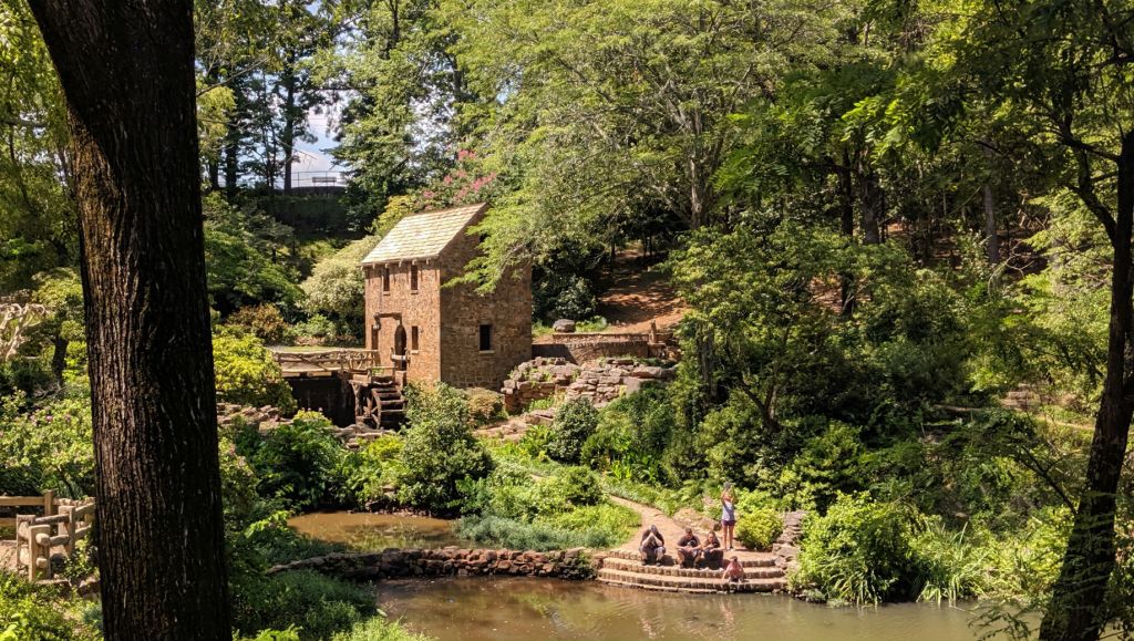 After having lunch at the All Aboard Diner in Little Rock, we decided to head to North Little Rock to see a picturesque mill I’d mentioned in one of my stories for It’s a Southern Thing. It’s known simply as the Old Mill and it was built to look like an 1880s grist mill. In reality, it was built in 1933. Its claim to fame is that it appears in the opening sequences of “Gone With the Wind.” The mill is located in T.R. Pugh Park, which was established in 1933 by Justin Matthews.
