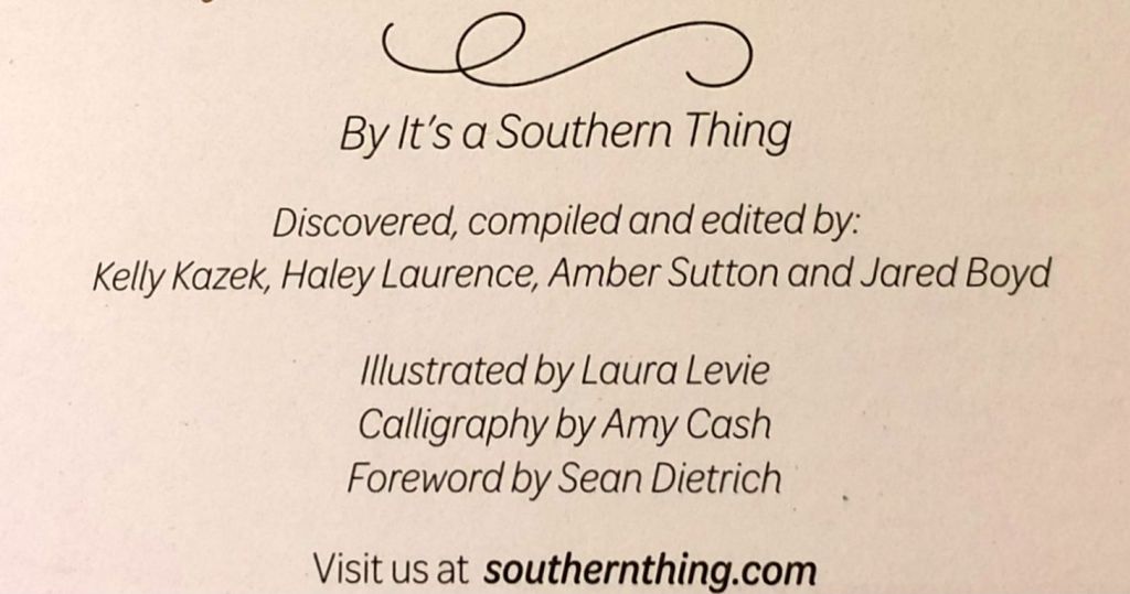 The good news is that I got a little surprise on another book, this one published by It’s a Southern Thing. “Bless Your Heart: Southernisms for Any Occasion” came out at the end of November, just in time to make amazing Christmas gifts. It features an intro from Sean of the South himself — Sean Dietrich. I am one of four contributors from It’s a Southern Thing, including Amber Sutton, Haley Laurence and Jared Boyd. It’s a small gift book in hardcover with beautiful illustrations and calligraphy.