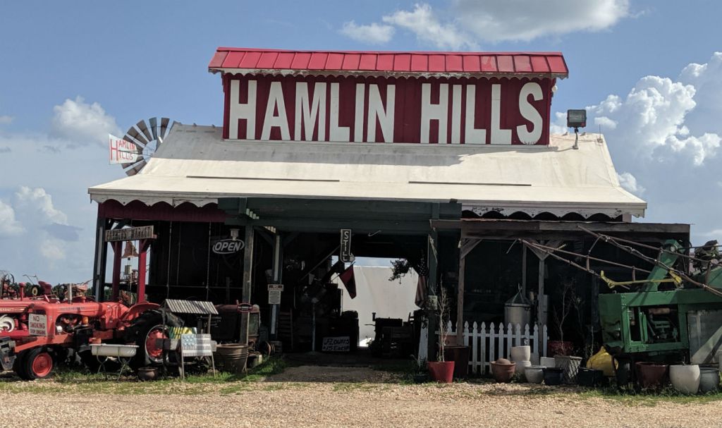 It turned out to be Hamlin Hills, which is billed as an agritourism site, which includes a produce stand in season, a petting zoo, all kinds of antique vehicles to look through, barbecue restaurant (weekends only), homemade jam and moonshine store and, in fall, corn maze and pumpkin patch.