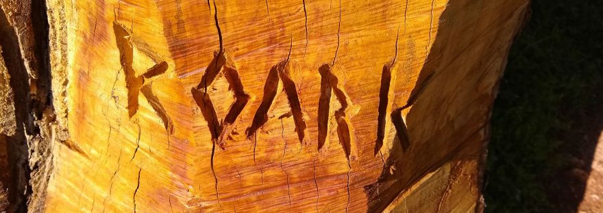 On this day, however, we came across a new piece of art. According to Cemetery Director Joy McKee, who was interviewed by WHNT, the tree had been damaged by storms and was no longer safe. Rather than cutting the tree down completely, the city hired Tennessee artist Roark Phillips to carve the trunk into beautiful vines of ivy. Check out our photos below.