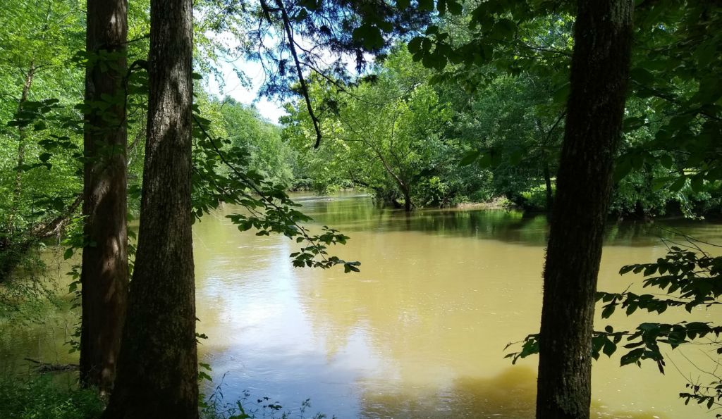On the way home, we passed the entrance to Hays Nature Preserve in Owens Cross Roads just outside of Huntsville. Sweetums stopped and took me on a short walk to find the trees, which grow on the bank of the Flint River and spell the word “hi.” The formation is reportedly a natural one. I took a few photos of the pretty park on the gorgeous sunny day and we headed back to the car. We were driving to the gates when Sweetums said, “Wait. Was that a unicorn?”