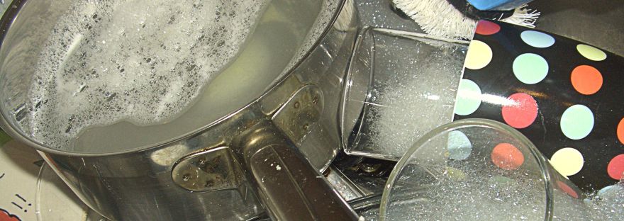 The dishwasher is 2 steps from the sink. Just put the dadburned plate in there
