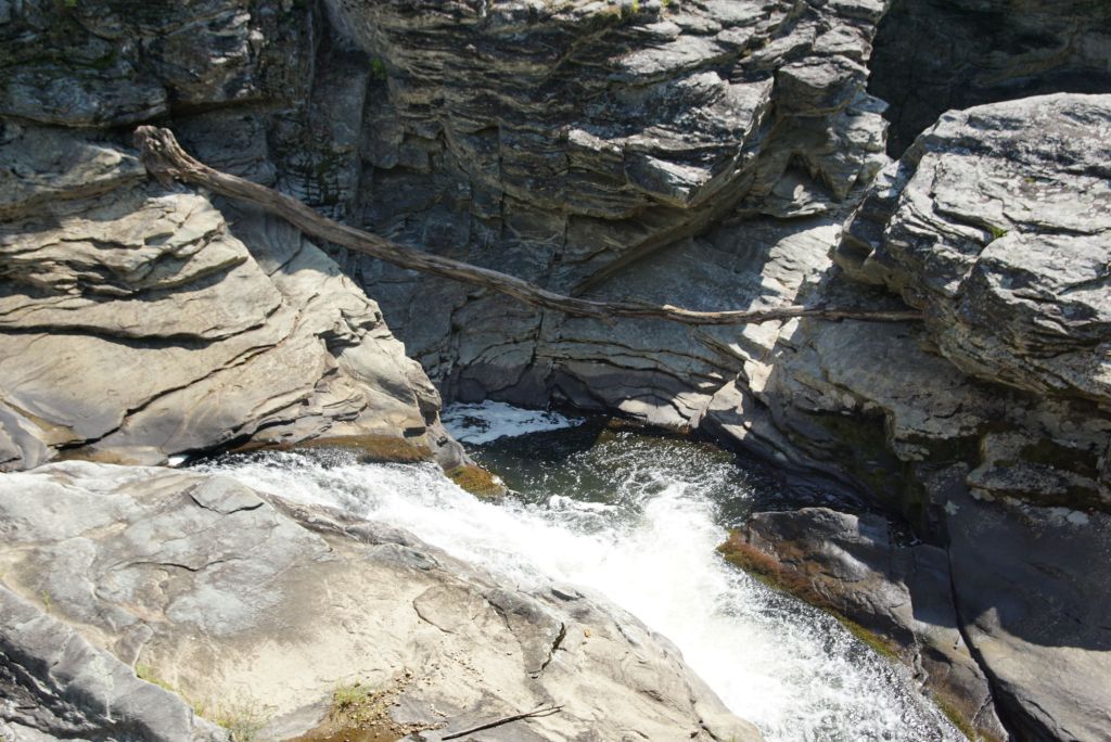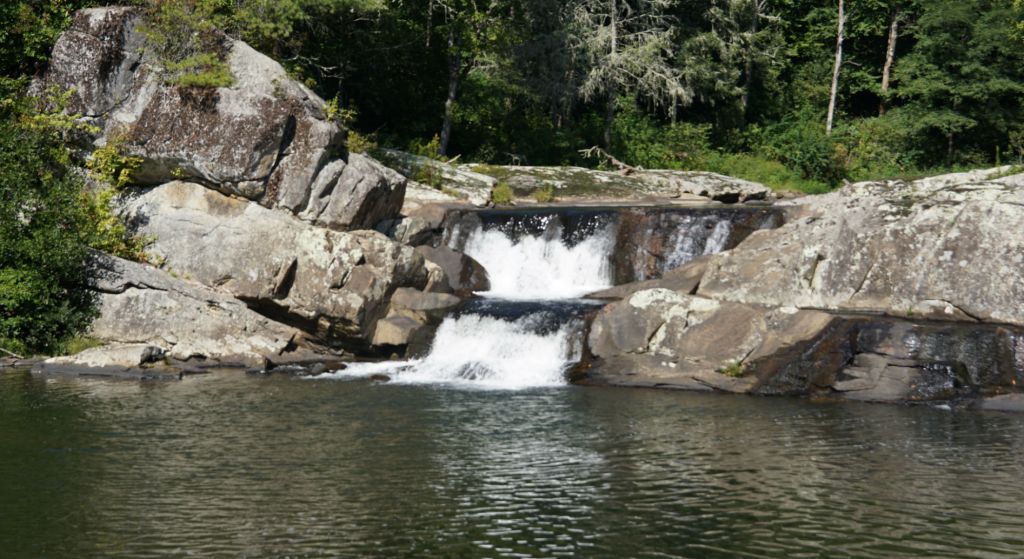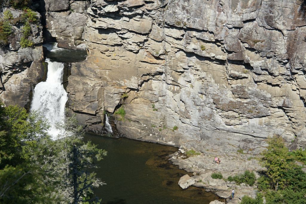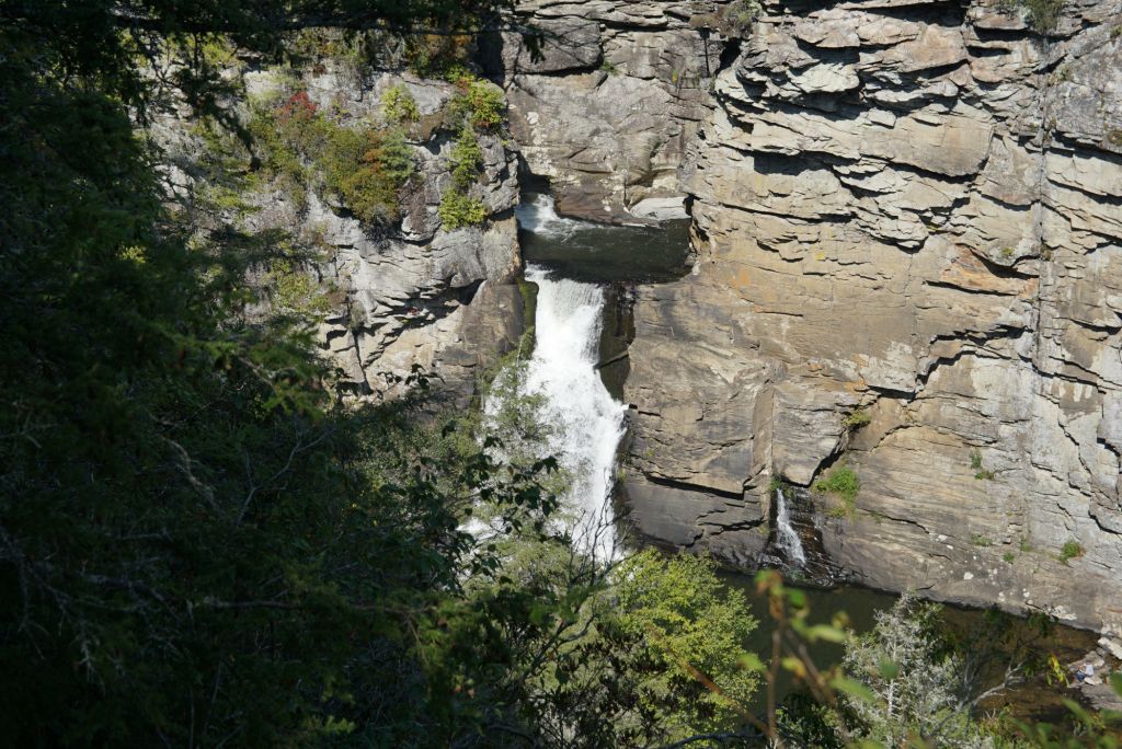There’s a hike to the falls, less than a mile one-way, and visitors come out at a beautiful area with two falls. But they aren’t the main attraction. Visitors then hike to one of the highest points on the mountain to get a view across Linville Gorge at Linville Falls. Even though you can only view it from far away, it is impressive and the surrounding scenery is beautiful,