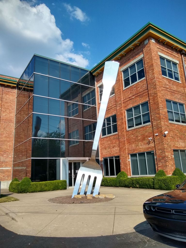 The fork is not easy to find because it was moved from its original location to the back parking lot of an ad agency, Noble & Associates. According to Roadside America, the fork originally stood in front of a local restaurant but when it closed in 1998, the ad agency bought the fork.
