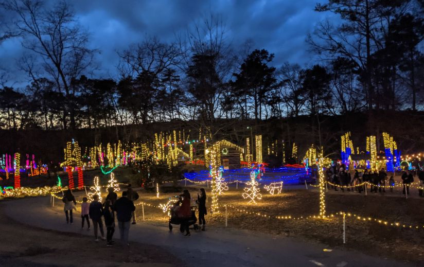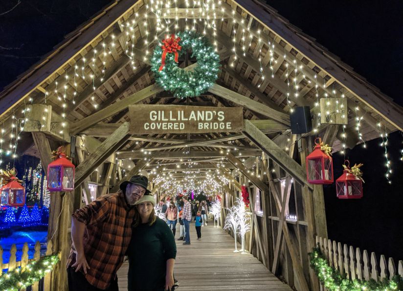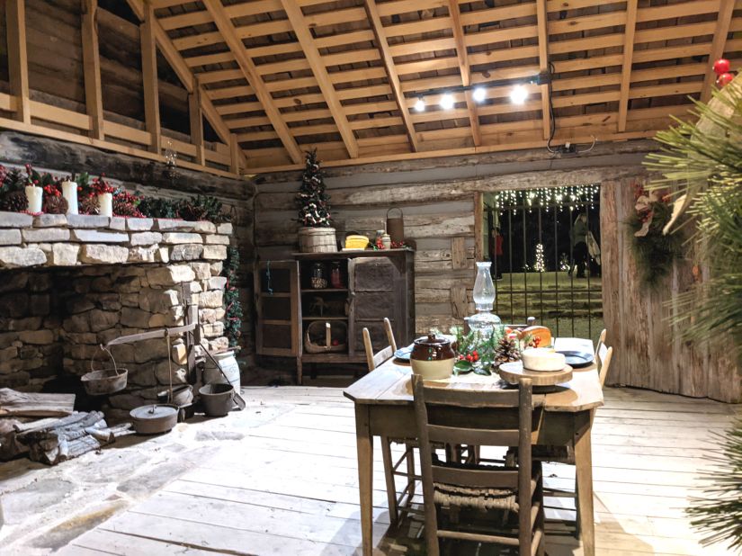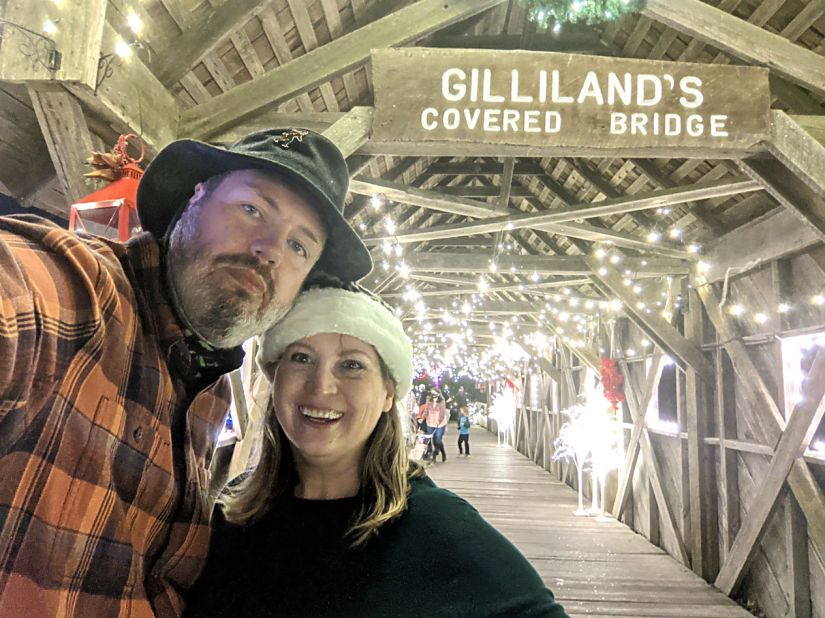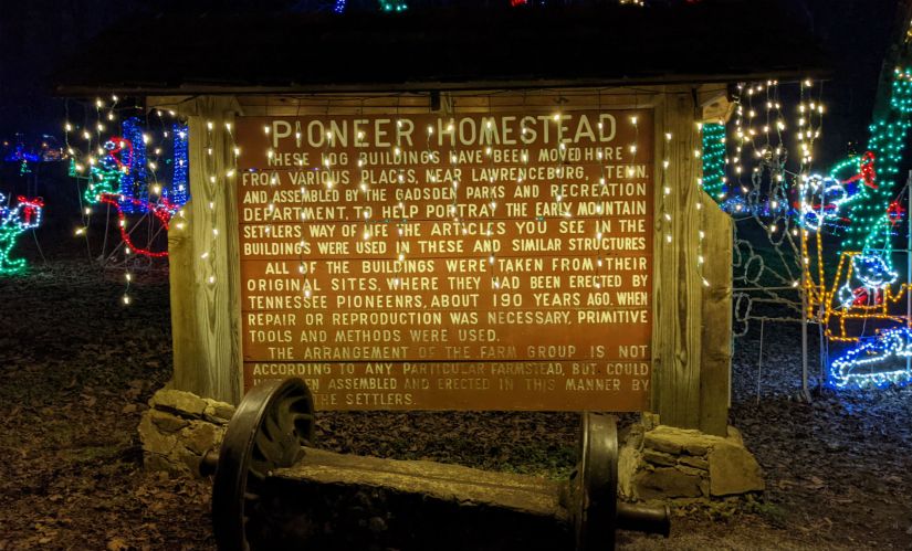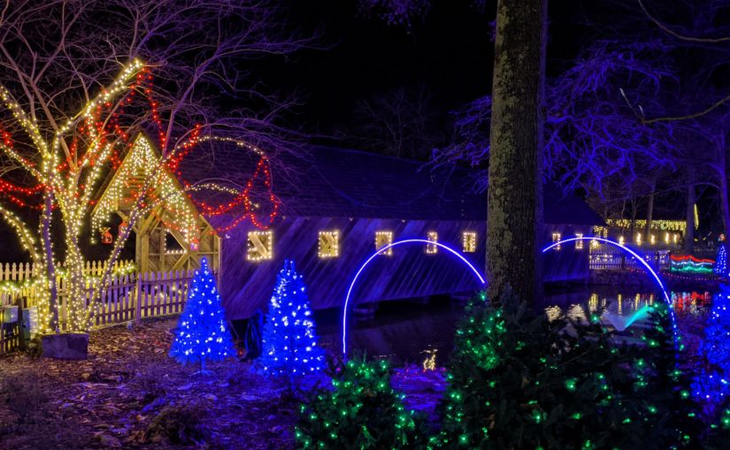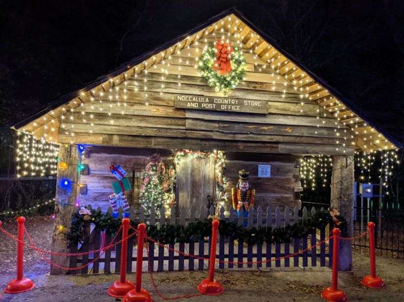 If you haven’t been to Alabama’s natural wonder Noccalula Falls, you’re missing out. It is gorgeous. And if you haven’t seen it at Christmas, it’s definitely worth a second trip. The 90-foot waterfall is part of Gadsden’s Noccalula Falls Park, which features all kinds of walking trails and a campground, as well as family activities like train rides, a playground, a petting zoo and mini golf. But one of the most interesting areas of the park is the Pioneer Village, which features Gilliland-Reese Covered Bridge (the sign identifies it as Gilliland’s butit is listed online as Gilliland-Reese).