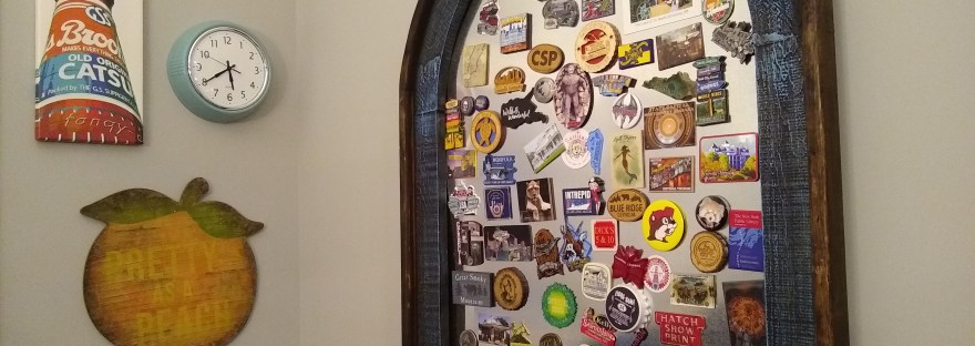 I've been thinking it would be fun to show you some of the weird things I've collected in my travels across the country (mostly, the South, yes, but other areas, as well). Sweetums and I began collecting magnets when we met nine years ago but we also have some fun objects we've picked up along… Continue reading Collections from my ‘weird travels’ displayed in fun ways