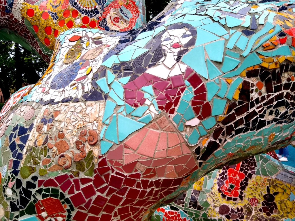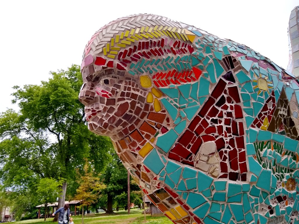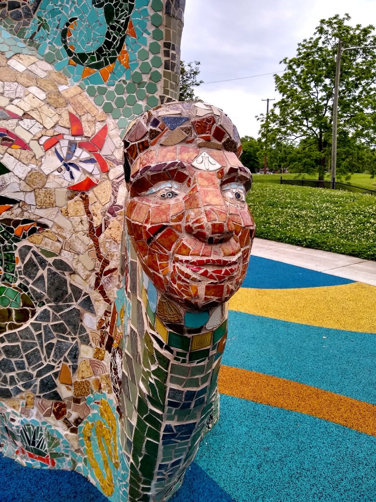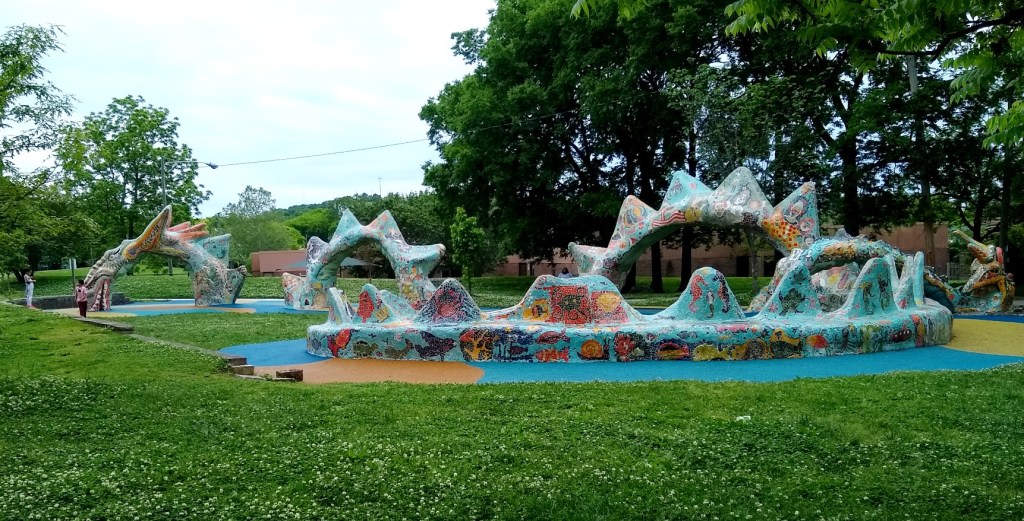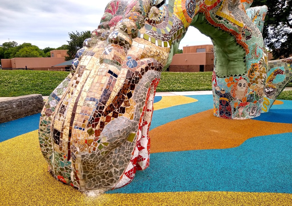 The first stop was Fannie Mae Dees Park, known locally as Dragon Park. It is home to a massive, 150-foot-long concrete creature covered in mosaic tiles and filled with wacky faces. The “dragon” is actually two sea serpents entwined, according to NashvillePublicArt.com.