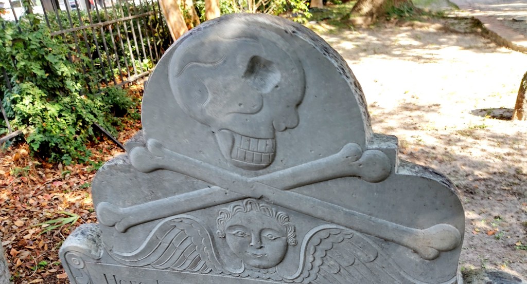 - Markers in the 1600s typically were adorned with skull-and-crossbones to represent death. By the early 1700s, skulls were still in use but “the crossbones were beginning to be replaced by wings and the resulting image was being called ‘death’s head,” the website said.