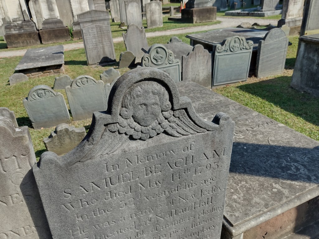 Some of the grave markers were especially interesting. Some of the 18th century graves are adorned with portraiture. The website says, they are “natural representations of the deceased (although whether the carver attempted to capture an individual likeness rather than simply to represent a type is a question that is still being studied).”