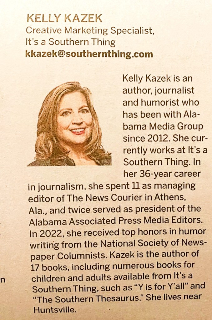 My job changed because of the popularity of the series of children’s books I’ve written for It’s a Southern Thing. Most folks are aware of IAST but for those who are not: It is a sister company to AL.com that creates humorous videos and content about Southern culture. See some videos here. I work with some of the funniest people on the planet!