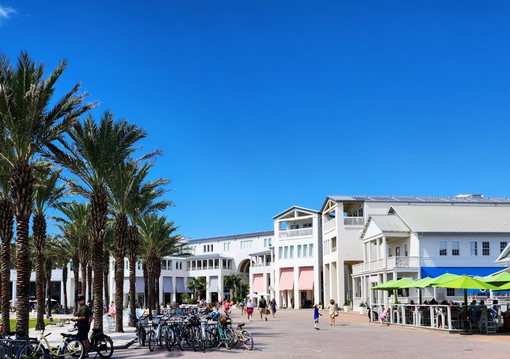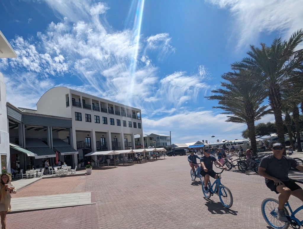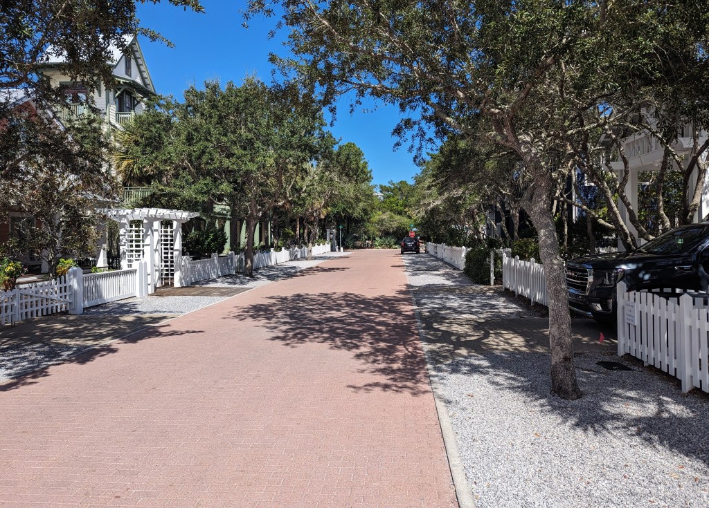 The first thing a visitor notices is, it’s not smart to have a car in Seaside. It is very much a walking community. The streets are narrow and extremely congested with cars, bikers and pedestrians.